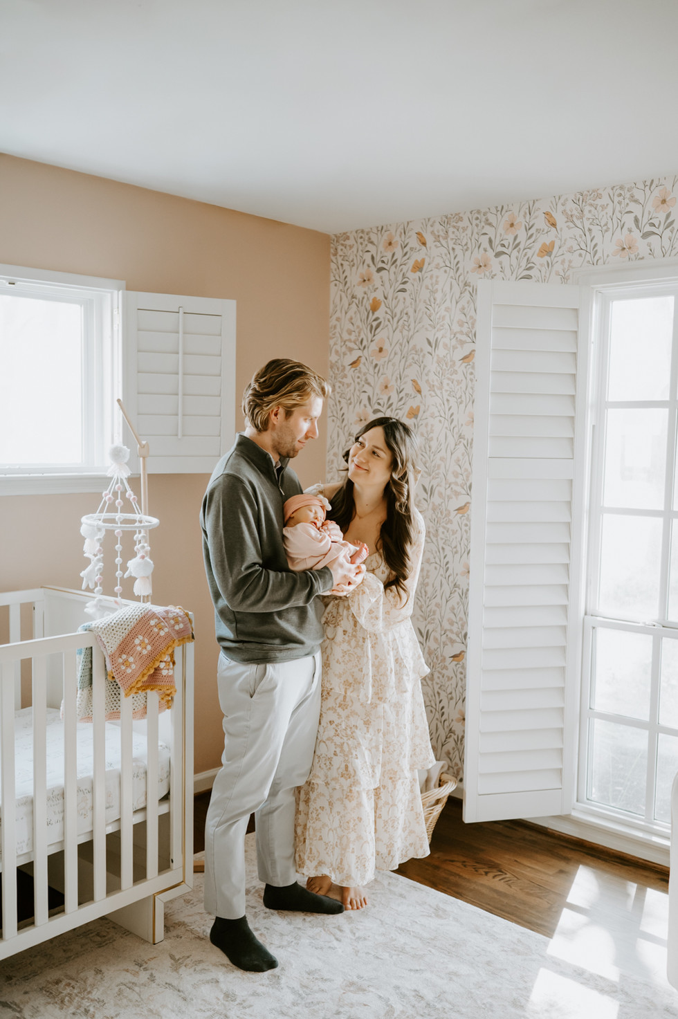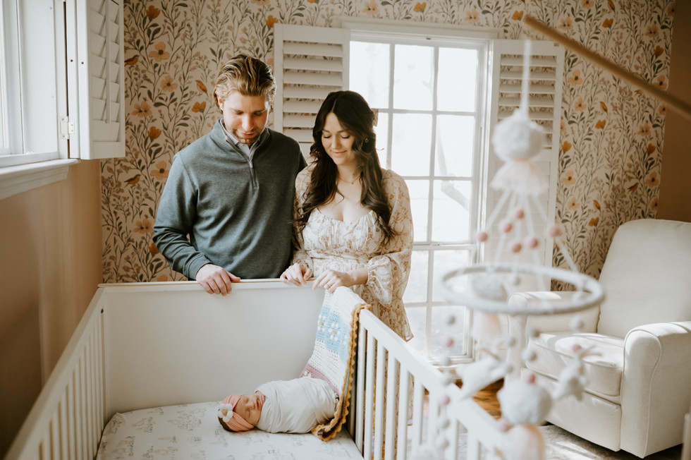 Knowing what to expect during your newborn session is key to reducing the stress of the session. Luckily, just a couple of simple things can make our session go smoothly! First, the baby's schedule is important to keep them calm and sleepy during our session, which is why I ask parents to keep the baby up for about an hour before I come and feed them right before I get there. This usually helps put the baby into a nice deep sleep so they don't fuss or fight when we are working with them! The other step is to clear the spaces you'd like to shoot in-- just so there is no background clutter. When I arrive I always swaddle the baby tightly to keep them soothed and comfortable, and I have no problem tucking away anything I feel will be a distraction in the background. Even if the baby stays awake for a bit, we work on their schedule and I love helping to rock them to sleep. This couple did an amazing job of having their home and baby ready and it paid off with the most beautiful photos!
